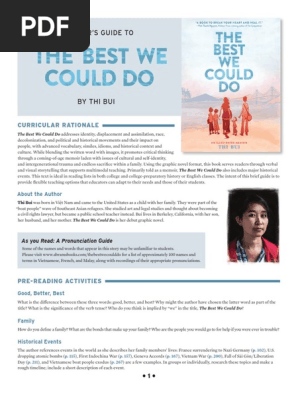 The Best We Could Do - Thi Bui - An Illustrated Memoir by TIK PDF 45 Feb 24, 2021 ... Read The Best We Could Do Portable Document Format - An Illustrated Memoir Ebook by Thi Bui book ; Read Online The Best We Could Do: An ... TEACHER'S GUIDE TO BY THI BUI Primarily told as a memoir, The Best We Could Do also includes major historical events. This text is ideal in reading lists in both college and ...